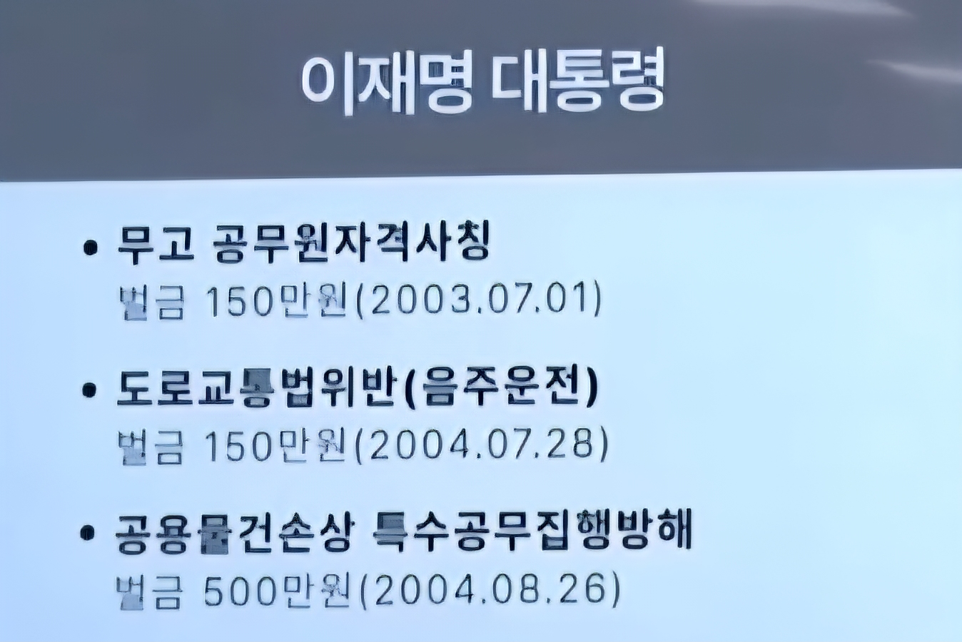 위증 교사 재판의 경우 법원의 결정·기록이 ‘폐문부재(당사자가 없고 문이 닫혀 있음)’로 송달되지 않았던 사례가 12차례로 가장 많았다. 재판 지연 꼼수라는 지적에 친명계인 민주당 정성호 의원은 “이 대표가 송달을 의도적으로 거부한 것이 아니라 (당시) 집에 사람이 없었기 때문”이라고 해명했었다. 이 밖에 피고인 신분으로 법원 불출석이 가장 많았던 것은 ‘대장동·백현동 비리’ 사건 재판이었다. 이 재판 과정에서 이 대표는 14차례(변호인단 불출석 1차례 포함) 법정에 나가지 않았다. 그러면서도 이 대표는 연일 “헌재는 신속하게 윤석열 탄핵 심판 선고를 내리라”고 촉구하고 있다.